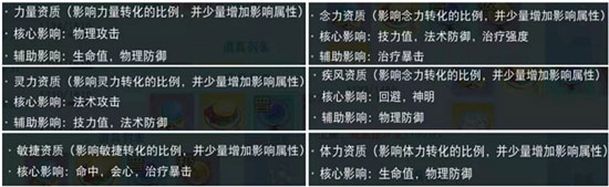 不同类型的异兽,需要着重培养的资质也各不相同。各项资质对异兽属性的影响,可参考下图。
