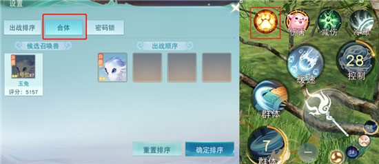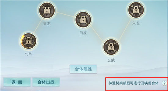 点击神通树界面下方的“合体出战”,即可进行合体出战的设置。再点击对应图标,就能进行合体了。