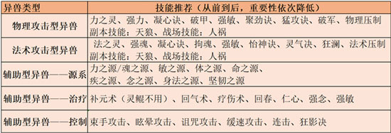 三、异兽技能搭配