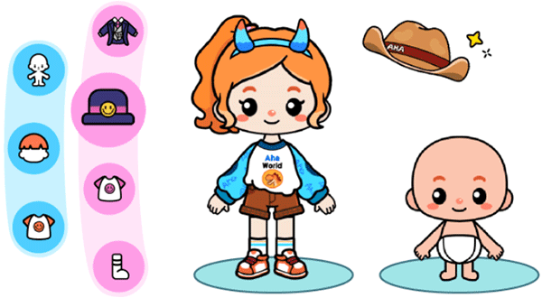 Aha World 里挤满了由你控制的居民!录制他们的声音,选择他们的表情,并播放你的故事。你可以成为啊哈世界中的任何人!