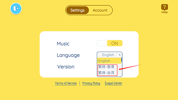 2、然后在语言选项中点击中国台湾或中国香港即可切换为中文界面