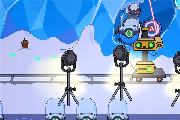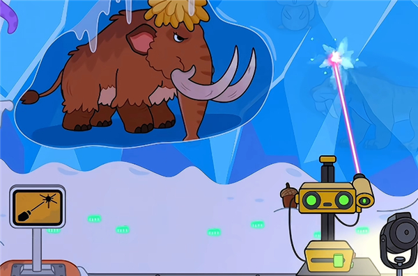 4、例如这里拖动激光将冰块融化,将可以看见长毛象以及小企鹅哦;