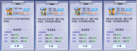 轻装上阵:作为校花学院中最基础的套装,轻装上阵套的均衡属性适用于所有角色,是前期很好的过渡装备。