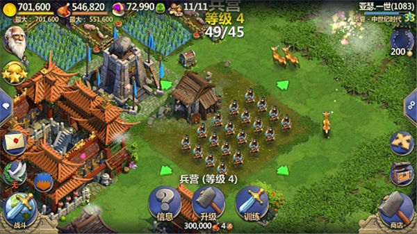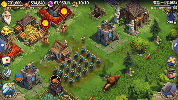 1、除了防御上的军事体现,在联机对战资源掠夺上也能体现文明军事发展的优劣。如何以最少的损失获取最大的收益是每个领主需要思考的,这其中最为重要的便是军团兵种的搭配。不同的文明具有各自特色的兵种,其在远近攻防上都有所差别,在军事发展前必须对自身文明的特色兵种深入了解,根据特色兵种选择不同的兵力搭配。