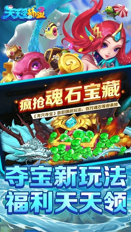超高人气捕鱼游戏,天天爱捕鱼手游最新版本,游戏中拥有丰富的玩法及模式,游戏免费玩拥有丰富的奖励,超高倍率的金币获得,还有很多道具奖励,很强的社交性,在传统捕鱼上加入新的玩法及创意,操作起来相当顺手,平时喜爱捕鱼的朋友一定要试试。