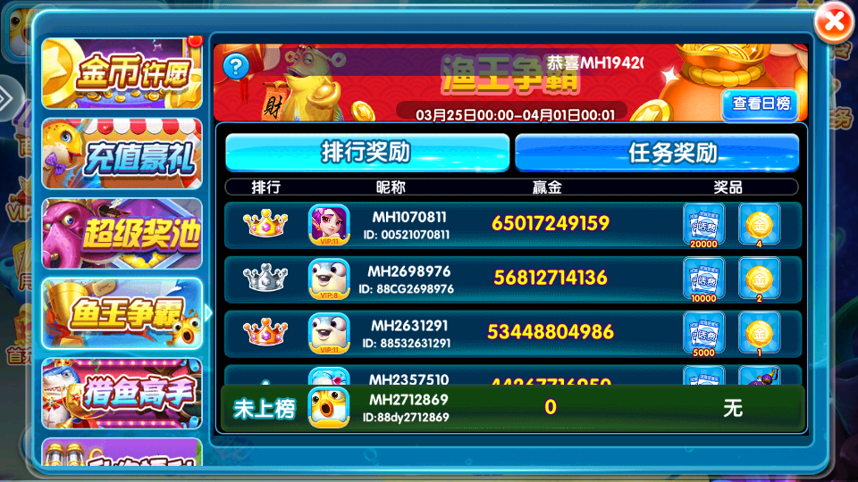 2、有金币许愿、超级奖池、鱼王争霸、猎鱼高手等多种活动等你来体验;