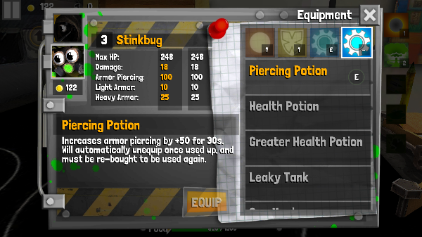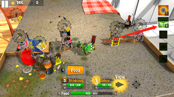 首先当然先从单人战斗中的任务模式说起,这也是本作的基础和教学。在任务模式中可以指挥两个虫虫英雄完成歼灭敌人、限时生存、捣毁敌人巢穴和保卫基地等多种任务,任务模式中的前5关左右为教学关卡。游戏的画面比起前作有了进步,但仔细看还是能看到锯齿,但不会很影响游戏的进行。战斗中的光影效果和声音都十分出色,配上激昂的军事背景音乐,确实让人热血沸腾。游戏中的地图不能像其他类似的游戏那样通过双指缩放来看到全貌,但其实本作就只有厨房、庭院和起居室三个场景,玩一阵就能记住。每个小关过去之后都可以获得一枚金币和升级经验值,金币的作用是可以在选英雄的界面升级能力,这个我们都很熟悉,和《王国保卫战》里面一样,在主动、被动、功能和炮塔进行能力的解锁和升级;经验值的累积则是可以升级英雄的等级。