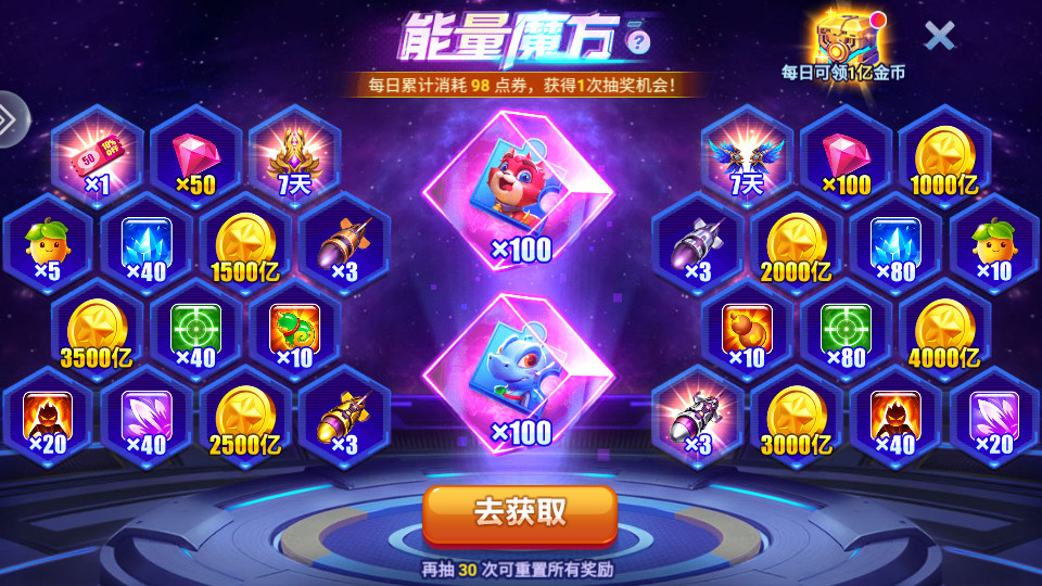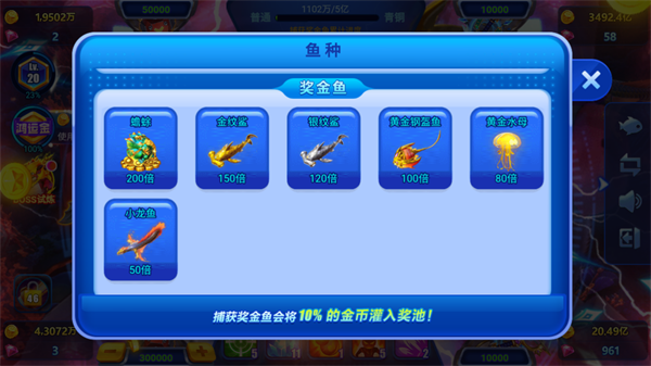 2.击杀赏金鱼部分银子会转化为赏金注入赏金池,累计一定数量后即可进行抽奖,最高可抽取50元话费。