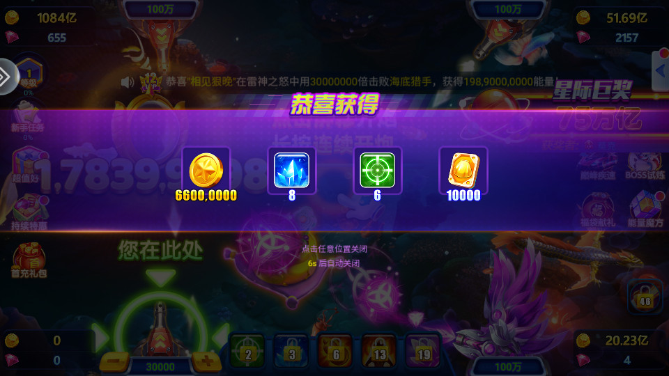 6、击杀大鱼获赏金,累计赏金抽话费!