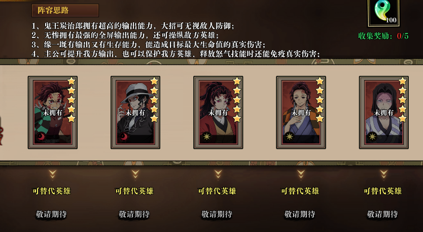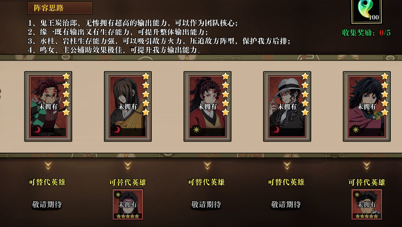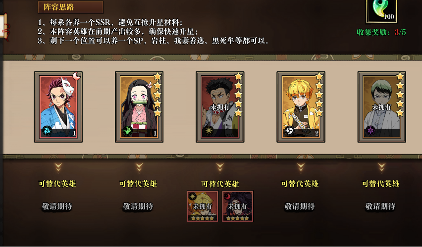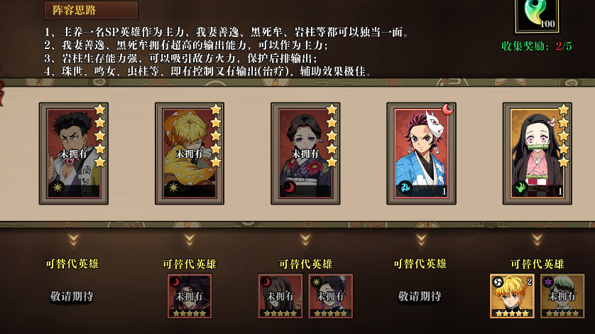 主养一名 SP 英雄作为主力,我妻善逸、黑死牟、岩柱等都可以独当一面;