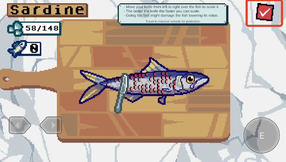 -从左至右滑动屏幕来使用你的刀来刮除鱼鳞。