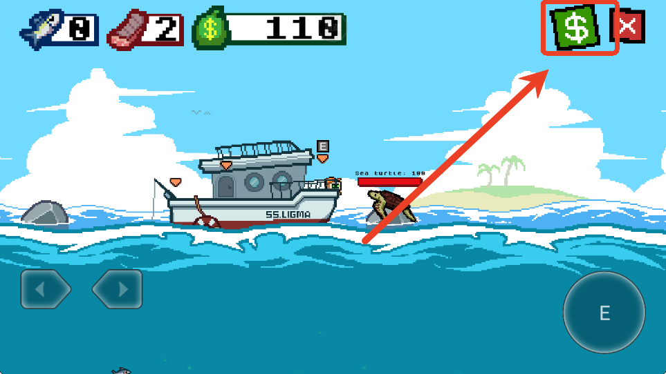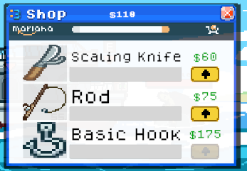 6、使用右上角的按钮进入商店购买升级您的刀,钓鱼线,和鱼钩。