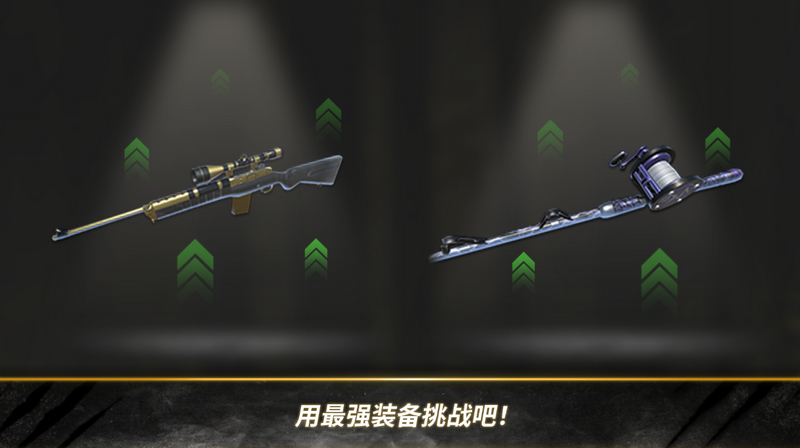 2、装备改装与个性化成长:从钓竿到枪械,自由改装装备,组合装备与卡牌,打造专属战斗风格,升级装备突破极限。