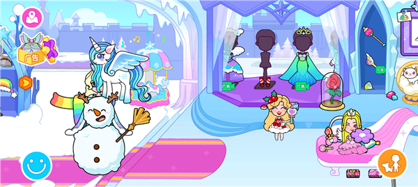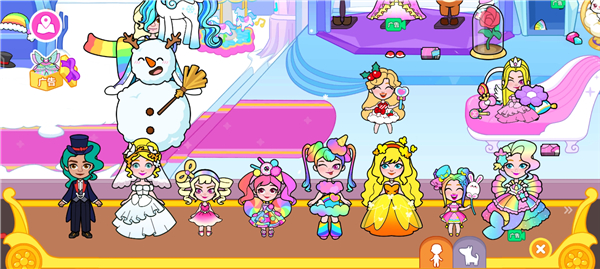 1、自由互动与换装体验:玩家可以选择不同角色进行装饰,通过拖动旋转木马上的服装实现随心换装,满足个性化需求;还能与海量可爱的NPC(如小公主、小王子、雪人娃娃等)互动,编排独特的故事剧情;