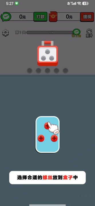 2、进入游戏中选择合适螺丝放入盒子中
