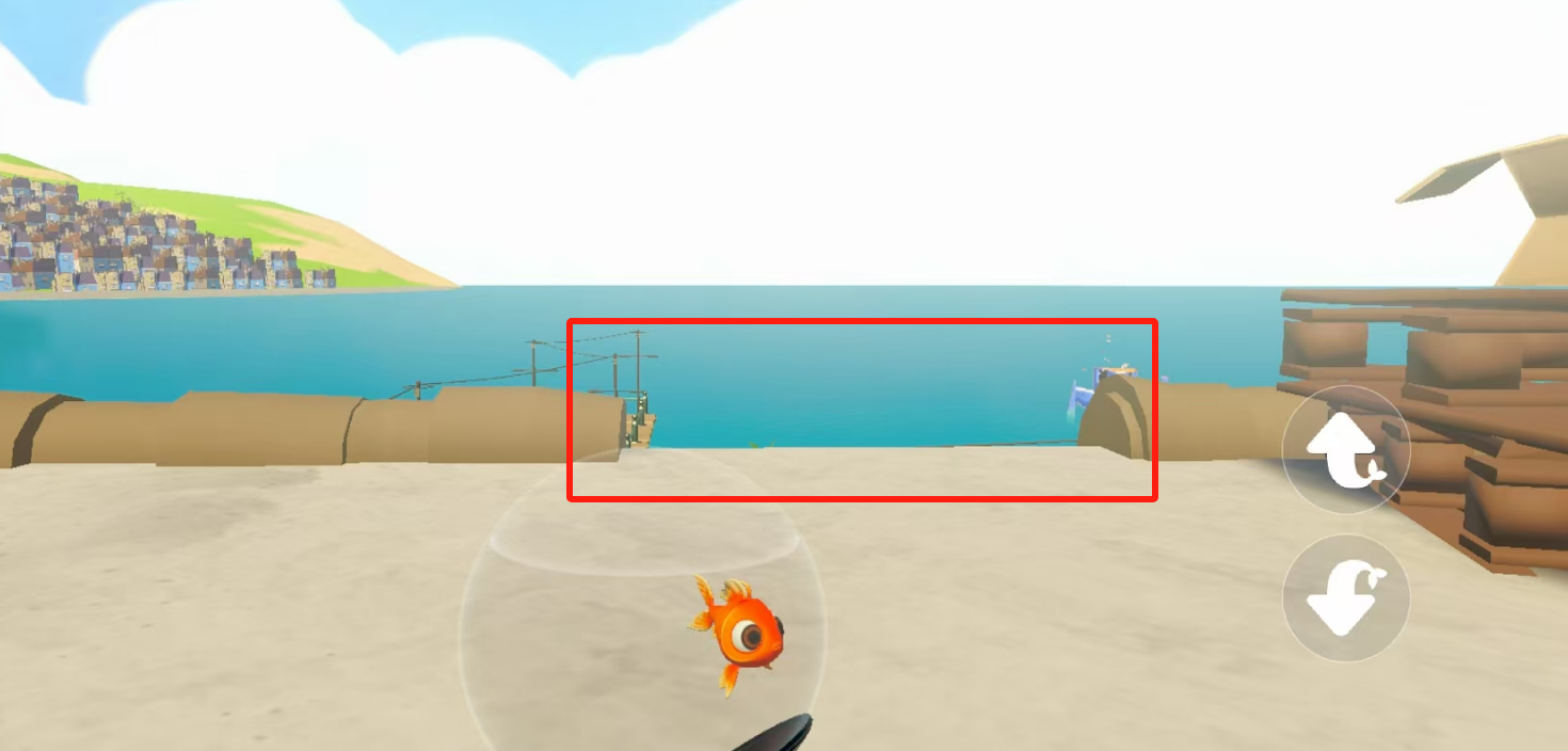 6、进入游戏后,玩家控制的小鱼在一个透明球体鱼缸内;