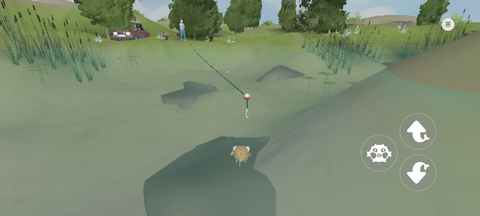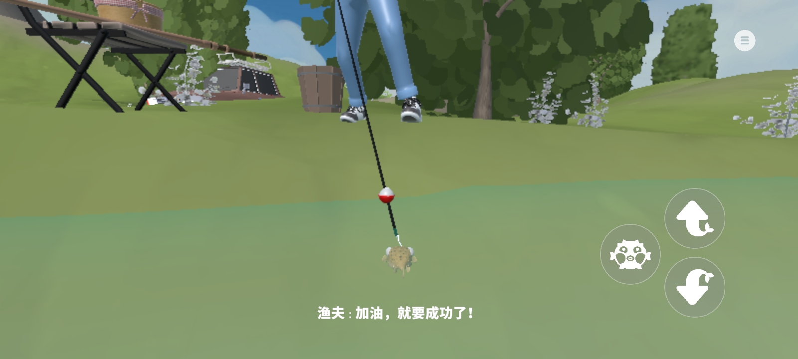 故意咬钩,使点力游去渔人那里,同时保持鱼线是金色的,到岸直接停就可以了,渔人会把你钓上去。