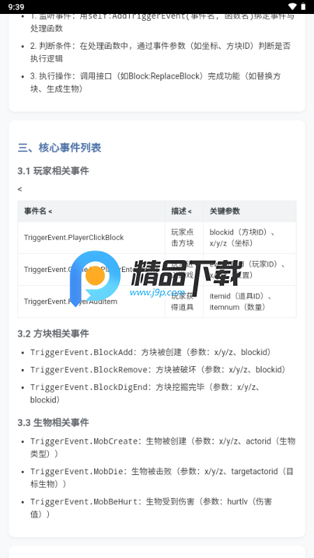常用事件/接口列表:列出常用事件和接口,方便开发者快速查找和使用。