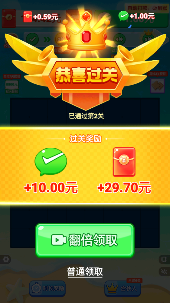 如果完全不观看广告,单纯依靠关卡奖励,一小时收益仅几毛钱。而如果选择频繁观看广告,则可以获得双倍奖励或额外道具,收益能提升至每小时3元左右。尽管如此,若想真正实现可观收入,仍需投入较多时间并完成高难度关卡。