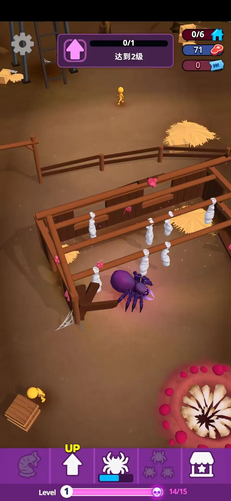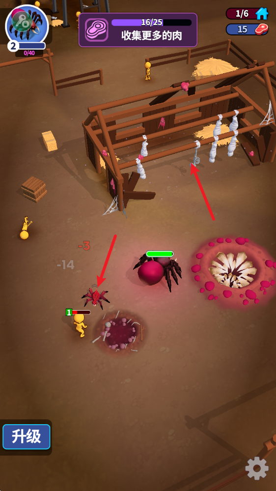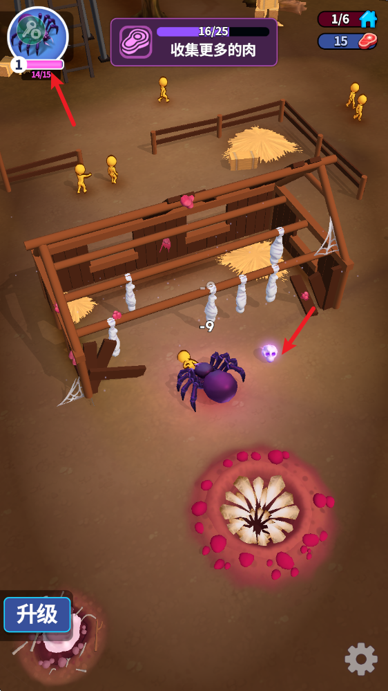 6、收集的肉资源还可以用来升级你蜘蛛的属性。