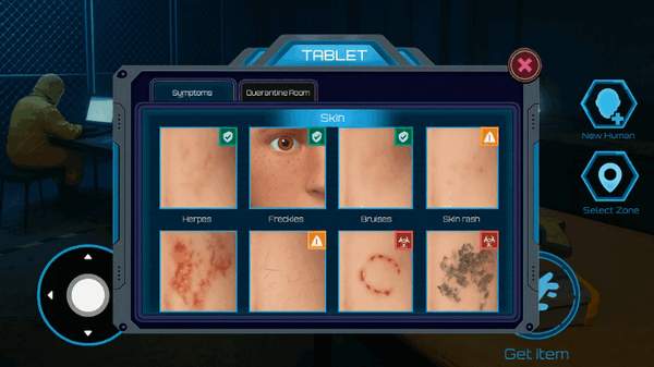 1、可以通过点击相应的工具图标来使用它们,对难民进行详细的检查。