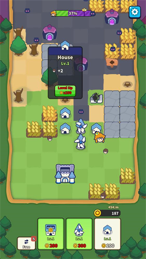 4、点击放置好的建筑可以消耗金币对其进行升级,升级后的建筑会有新的效果。