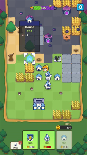 5、不断放置更多建筑来召唤村民,摧毁对方的所有建筑就可以赢得胜利。