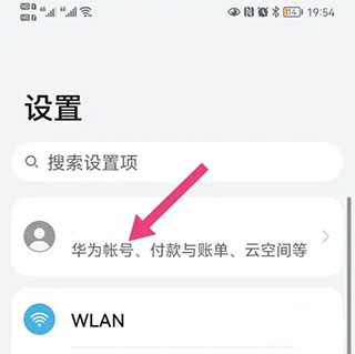 打开手机设置,点击华为账号。