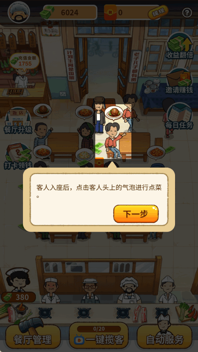 1、经营管理:包括采购食材、制作美食、服务顾客等基础环节,需合理调配资源以提升效率;同时可研发新菜谱吸引不同需求的客人,增加收入来源。