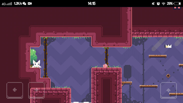 所以这就需要玩家朋友们熟练地掌握使猫咪减速的方法。那么,如何减速呢?其实很简单,我们只需要长按右下方的跳跃键就可以实现减速,等到达了避开了障碍的地方就可以把手松开。不过在那之前右手指不要松开哦,不然猫咪就会以9.8m/s的速度做自由落体运动!然后,你懂的。