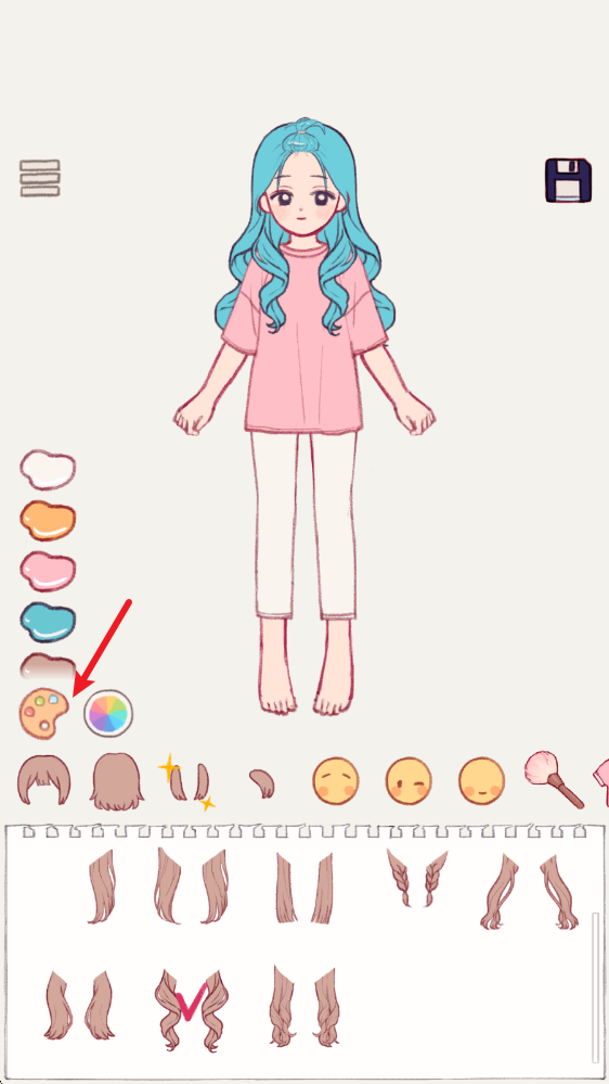 2、玩家可以自由的去决定角色的发型,点击左侧的画盘还可以去更换颜色。