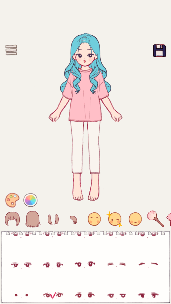 *喜欢颜色的调色板能够呈现出来,并且还可以线上分享自己打造好的人物形象。
