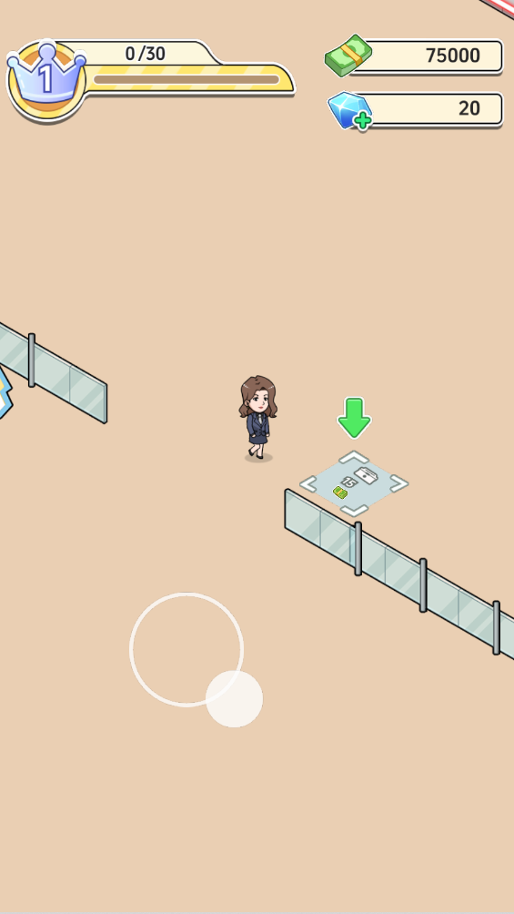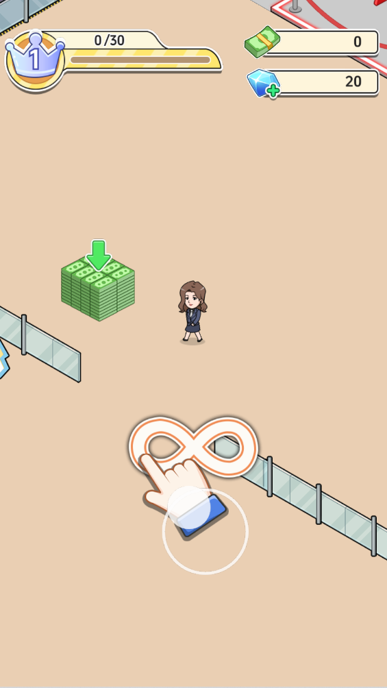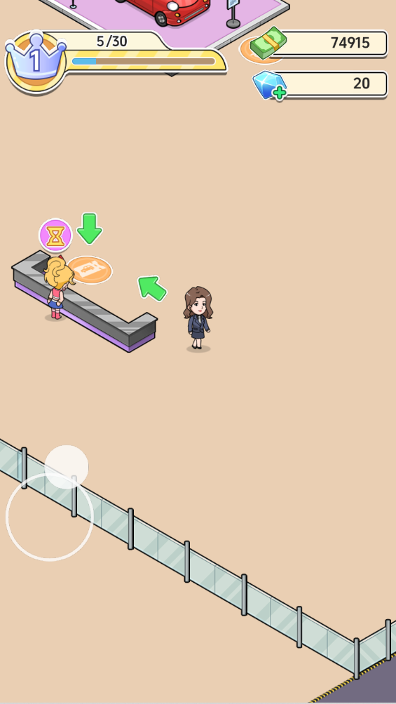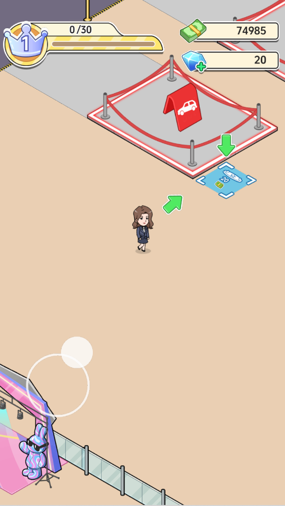 3.首先拿到你的车展的第一笔启动资金,移动屏幕上的操作摇杆拿取资金。