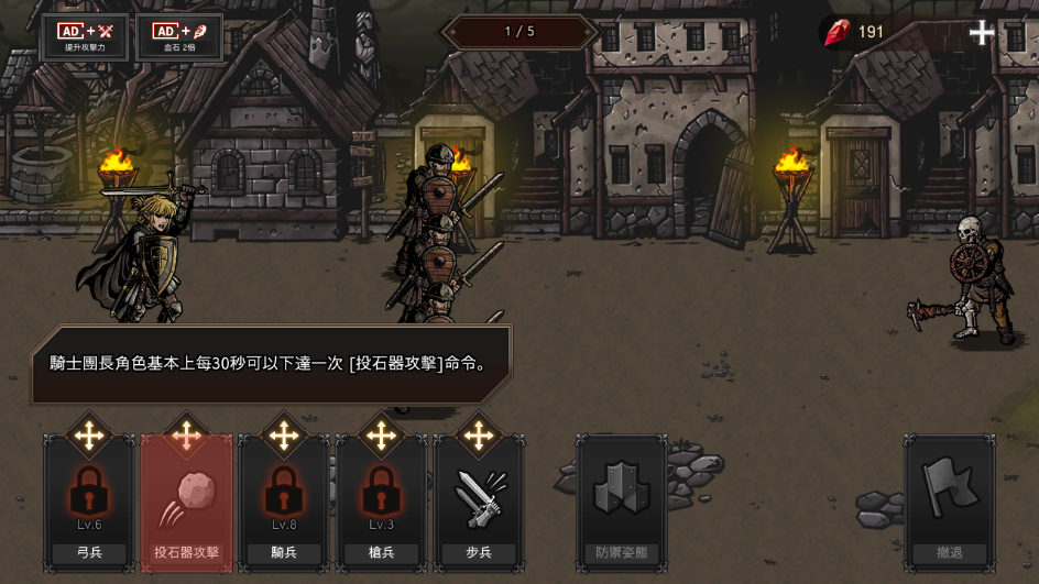 5、骑士团长每30秒可以下达一次【投石器攻击】命令;