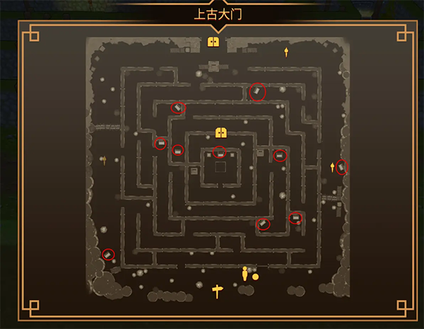 左下角的大门需要打开地图上×▲开关,左边大门需要用银钥匙,中间大门需要齿轮石块,右边大门开关在中间大门后面哥布林集中处,中间地穴需要大门内外都放上齿轮石块后,依次搬开大门上方石块,再搬开地穴门口石块,中间大门关闭的同时地穴大门会打开