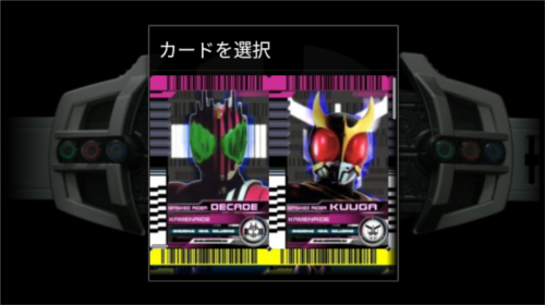 2、启动机关,出现骑士卡,左右滑动这个小窗口,可查看到电视剧中出现的所有骑士卡,选择一张进行变身。
