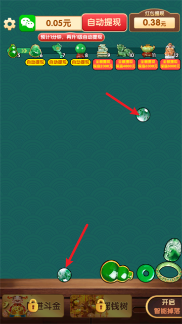 珠光宝气是一款休闲合成小游戏,玩家只需要控制物品掉落的位置,让两个相同的物品碰到一起合成成为高级物品,每次合成有概率获得红包奖励,合成的越多奖励越丰富,轻松游戏的同时赚取红包,快来下载试试吧。