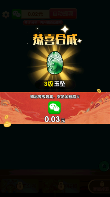 2、后续系统还会解锁自动合成功能,开启后就能够自动掉落、自动合成,解放你的双手,轻松领奖励。