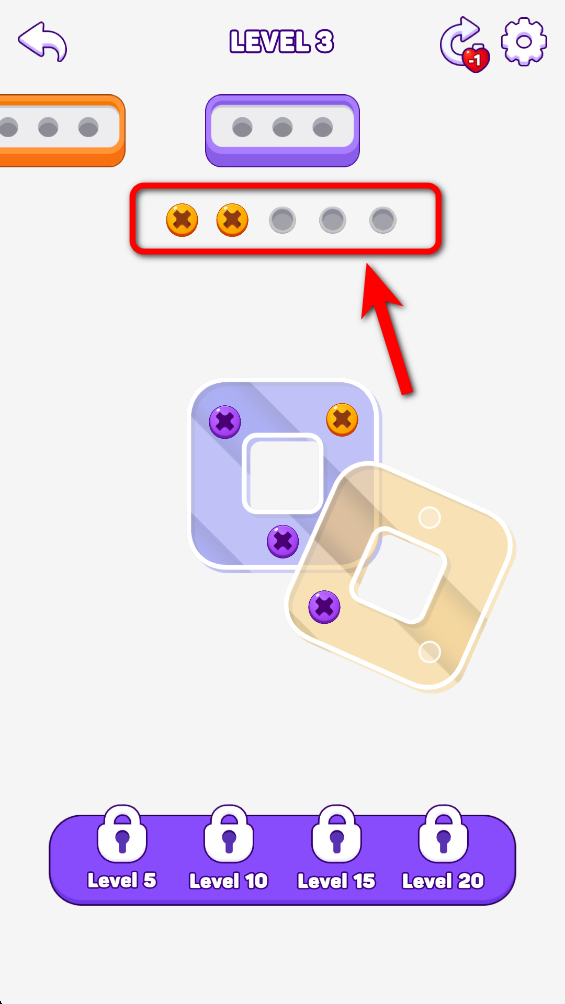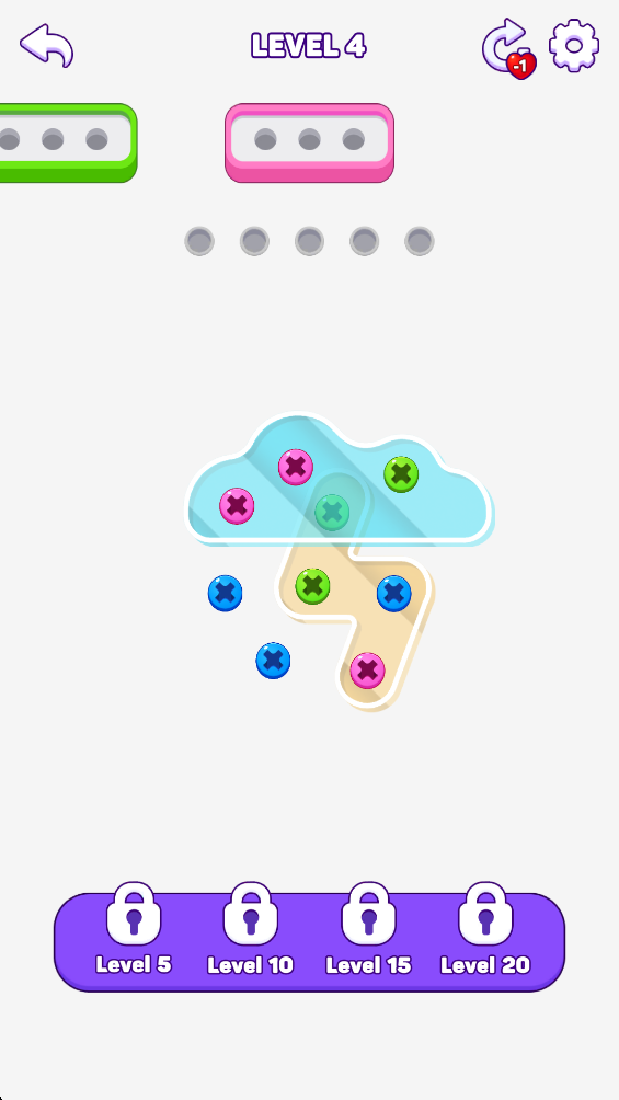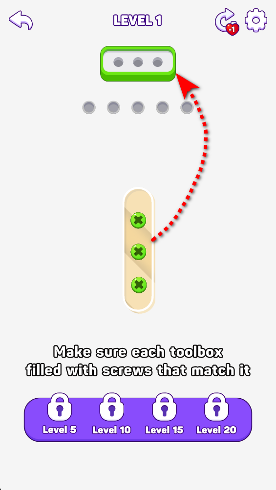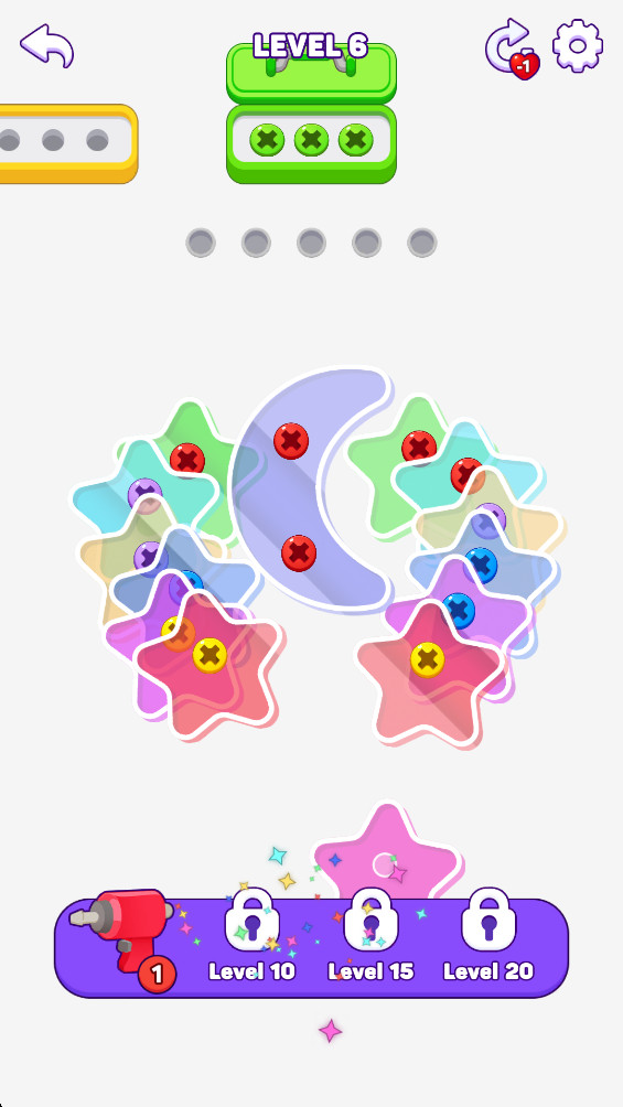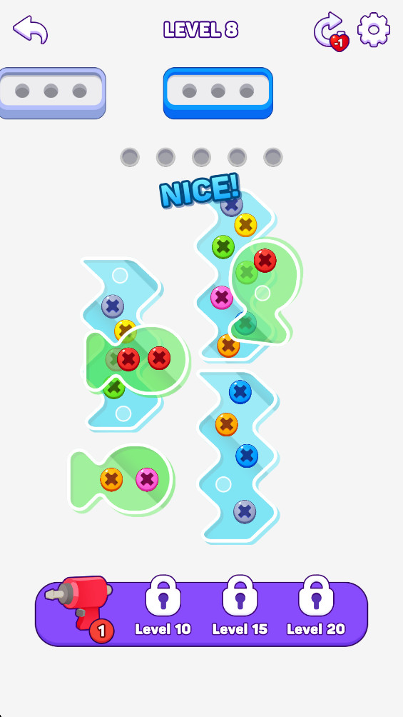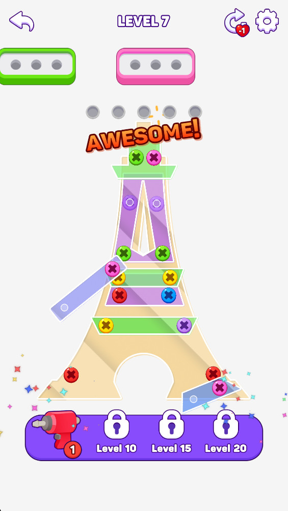 拧出螺丝是一款富有挑战性的解谜游戏,考验玩家的逻辑思维和策略决策。游戏中,玩家需要面对各种复杂的关卡,精准地按照特定顺序拧开和卸下螺丝,解锁被困住的木板。游戏结合了独特的机械思维和益智解谜元素,让每个关卡都充满了乐趣和思考。
