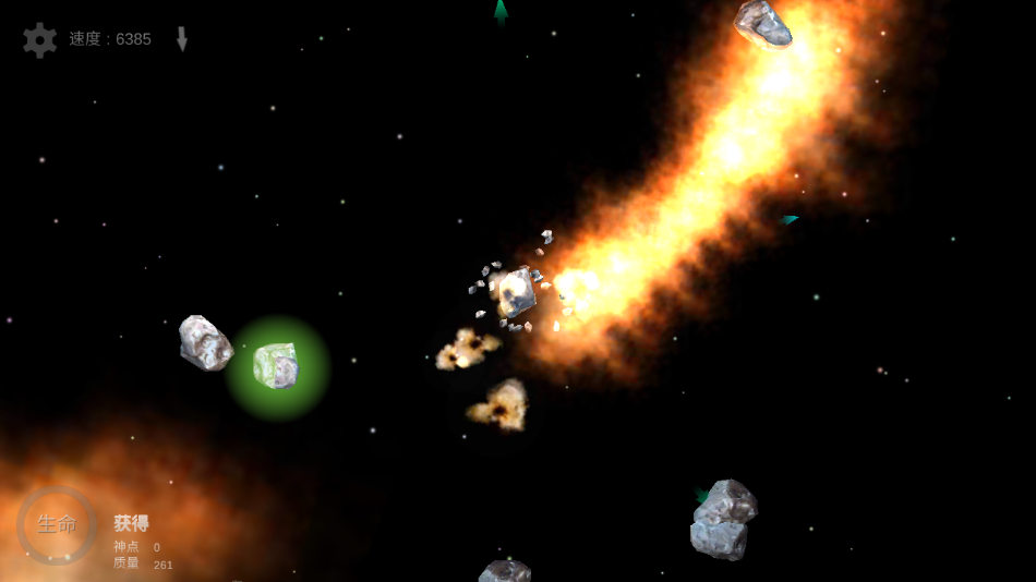 2、在开始时你将控制小行星开始,吸收其他小行星,但你不能撞到任何星球;