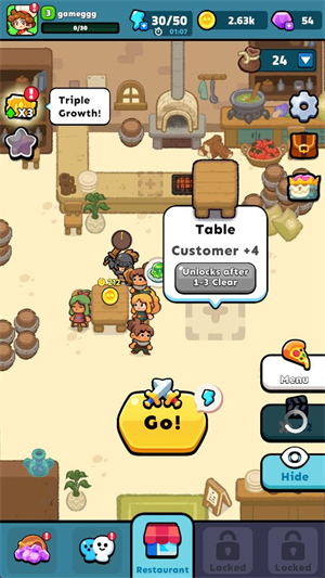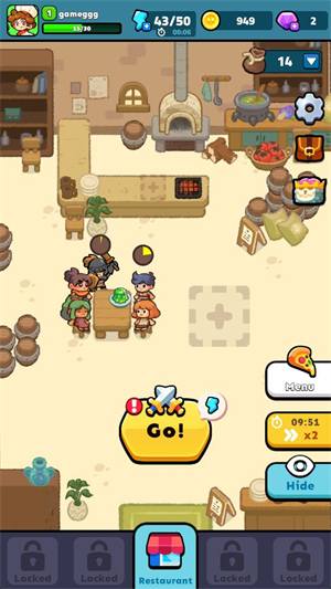 3、循环过程中需不断升级英雄技能、厨房厨具和餐厅设施,提升攻防实力与运营效率,迎接更具挑战的关卡和客群。