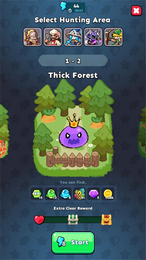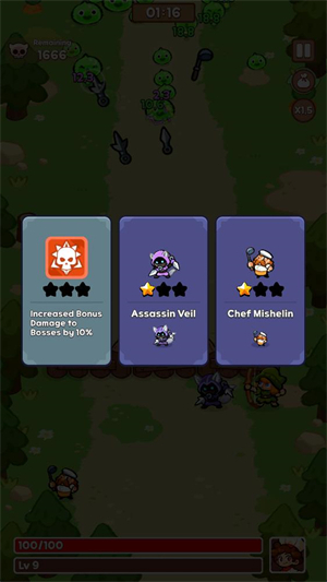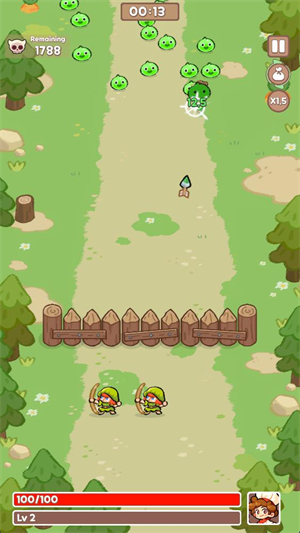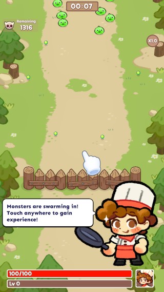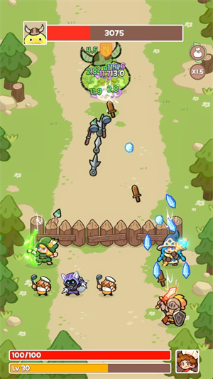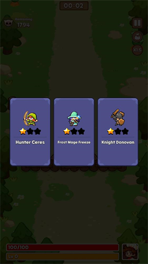 4、选好英雄后就会开始,角色会自动攻击出现的怪物,击败怪物后会获得经验用来提升等级。