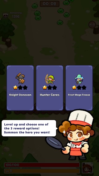 游戏的画风比较可爱,可以召唤的英雄角色很多,玩起来比较有趣,能解锁的美食也很多,你会体验到不一样的塔防乐趣。