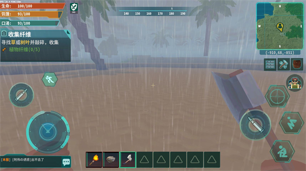 3、资源丰富多样,玩家可自由收集并制作不同道具,从简单工具到复杂武器、建筑应有尽有。