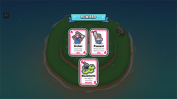 4、小兵会自动攻击出现的敌人,消灭一波敌人后玩家可以选择一张卡牌来继续闯关。