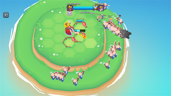 3、放好后就会开始闯关,中间的国王会旋转来召唤小兵,每次经过建筑都会召唤一个小兵。