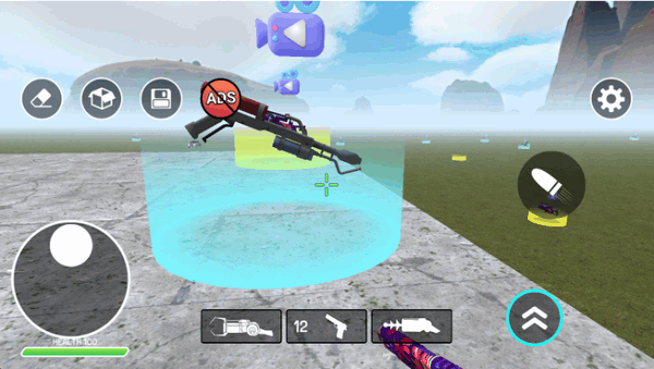 2、在游戏中,点击左下角第一个武器,然后发射,就能在场景中加入敌人。