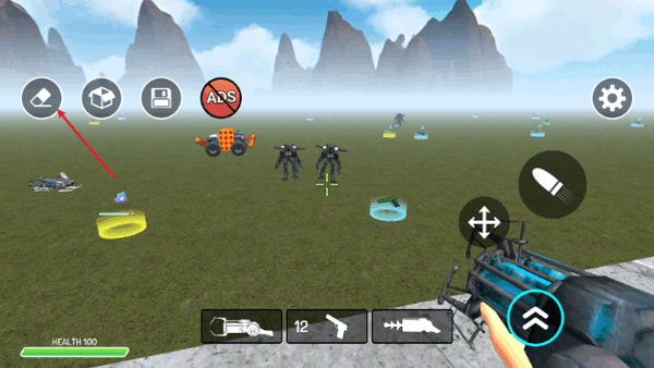 6、点击左上角的橡皮擦按钮,可以清除场景中所有的敌人。
