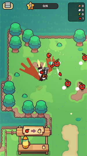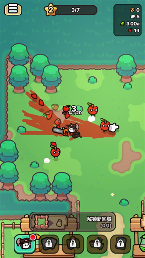 2、靠近水果就会自动攻击,消灭这些水果就可以获得果实。