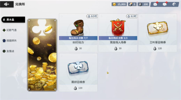 第一天的话,建议使用幻影气息兑换「行动力]「尤尔]以及「经验药水J来快速提升战力推进主线。